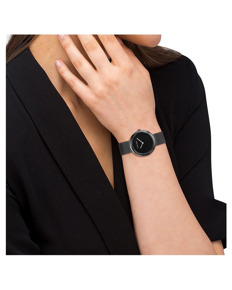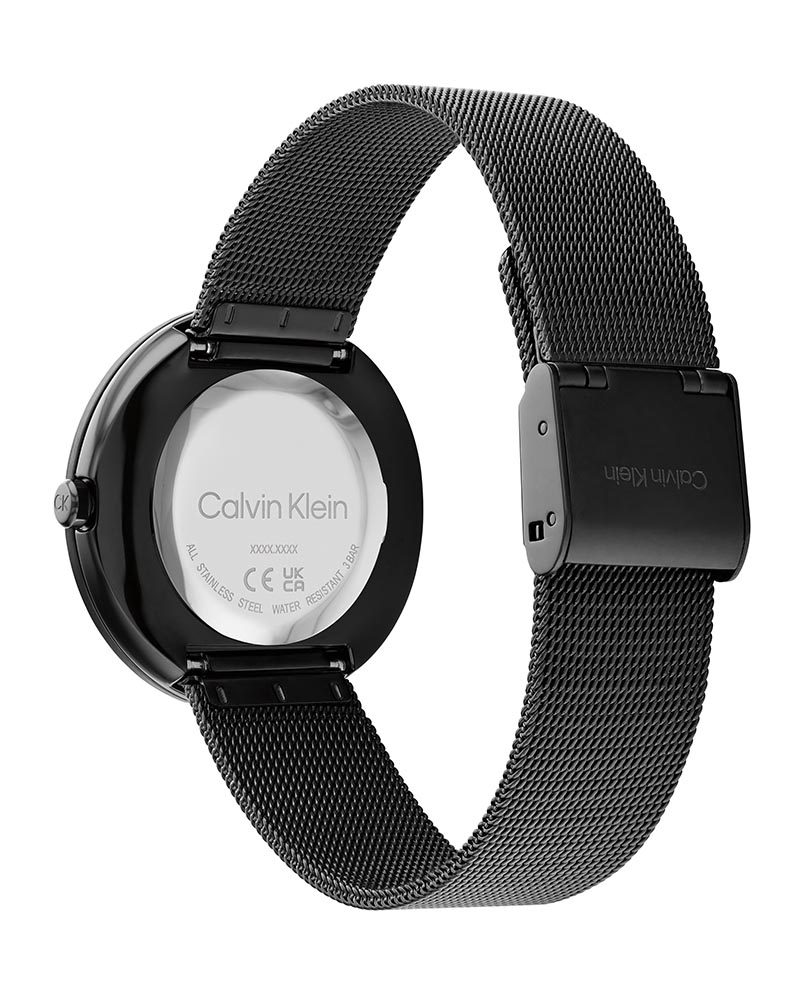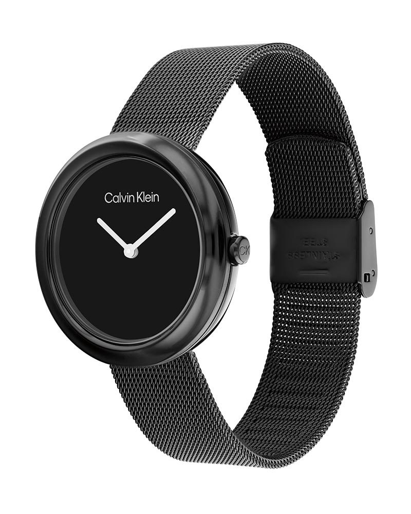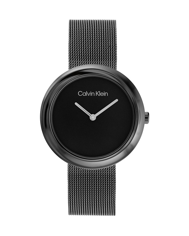 Why You’ll Love This Watch Deep matte black dial and matching black PVD case create a stealth-luxury vibe. The signature twisted bezel adds that unmistakable Calvin Klein touch, while the lightweight black mesh bracelet feels airy and drapes perfectly. At 35 mm it’s bold yet feminine – the ultimate go-anywhere statement piece.