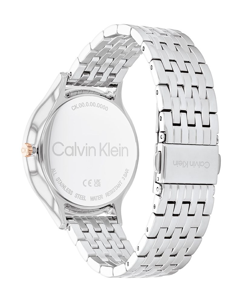 Why You’ll Love This Watch Rich blue sunray dial with delicate crystal markers that sparkle softly. Full stainless steel silver case and bracelet give it a clean, polished look. At 38 mm it’s perfectly balanced – bold enough to stand out, still feminine and comfortable all day. Classic Calvin Klein style that never goes out of fashion.