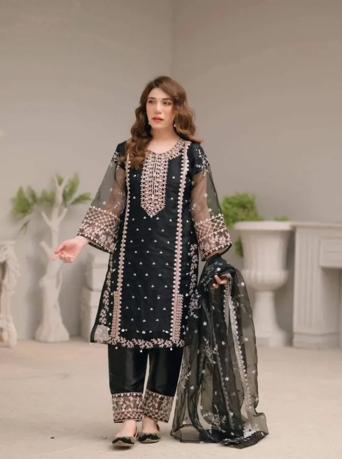 Enhance your wardrobe with this beautifully designed stitched organza three-piece suit, crafted for women who love style, comfort, and timeless elegance. Made from premium-quality organza fabric, this outfit offers a luxurious feel with a flawless finish—perfect for formal events, festive occasions, and special gatherings.